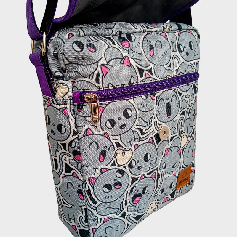 Carriel de la colección Minicat, con correa manos libres y  bolsillo en secundario.