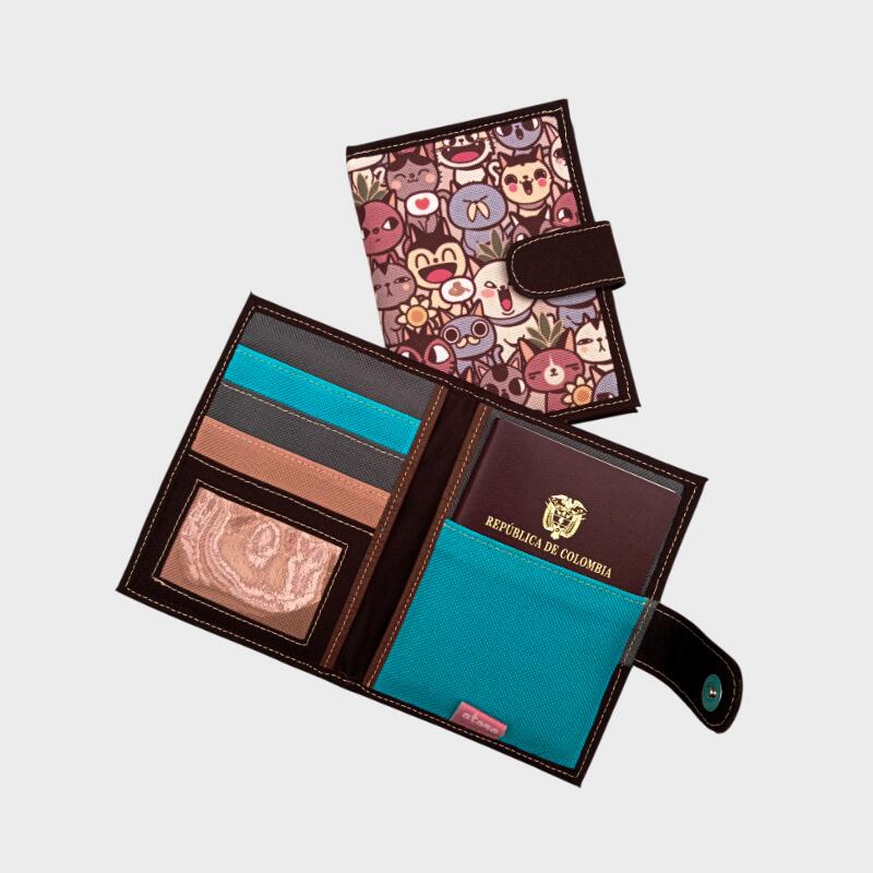 Portapasaporte de la colección Allcats, con cinco compartimentos para tarjetas  y cierre imantado.
